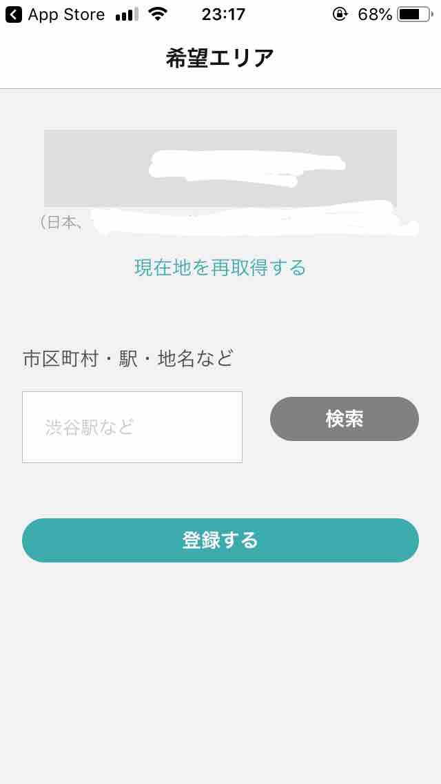 電話番号を入力するとSMSでメッセージが届きメッセージ内に記載がある番号を認証パスとして入力。認証が終わると希望エリアの記入を求められます。