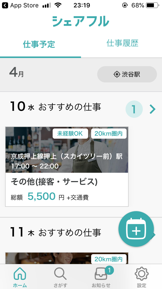 シェアフルなら、1日単位のお仕事がアプリですぐに見つかる!しかも、面接不要なので、あとはお仕事先にいくだけ!