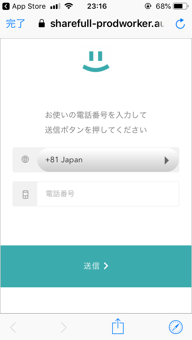 新規登録をポチッとクリック。すると電話番号の入力が求められます。